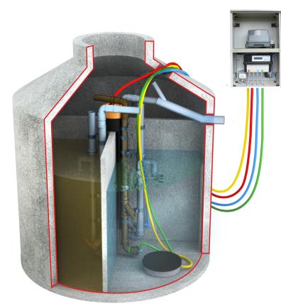 werkseitig in Beton-Klärgrube installiert